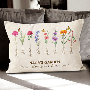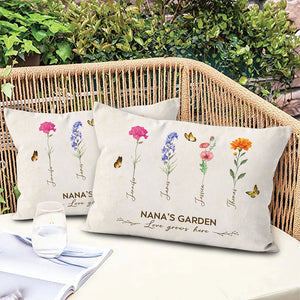 Grandma's Garden Birth Month Flower Personalized Pillow For Grandma