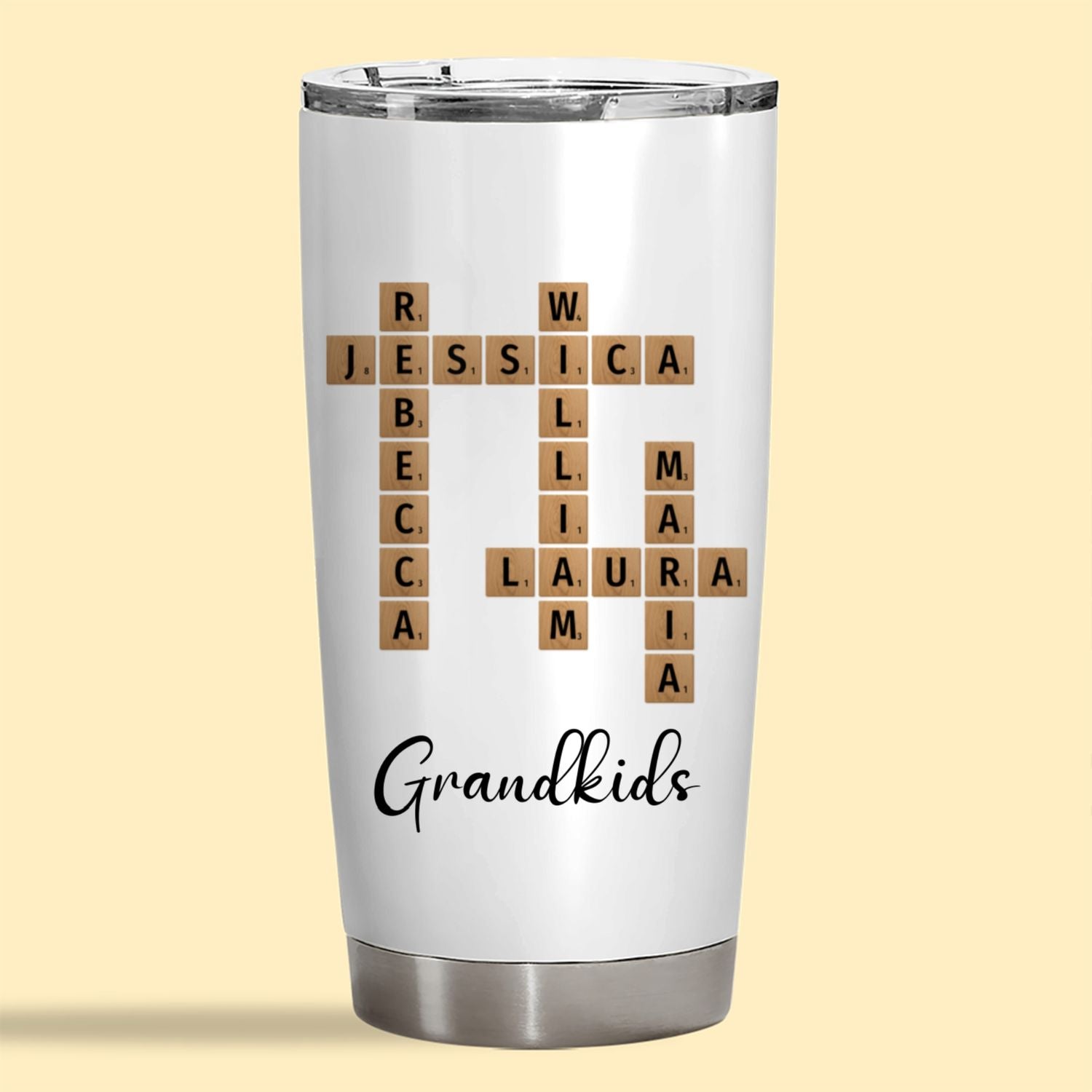 Keep cherished moments close with this personalized grandkids crossword tumbler. Featuring their names, it’s a meaningful gift that brings warmth and smiles wherever grandparents go! Perfect for everyday use.