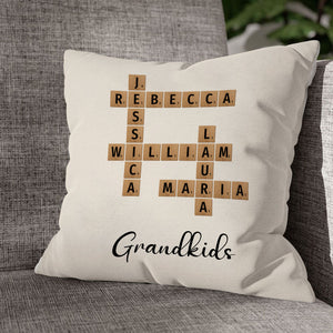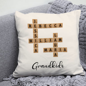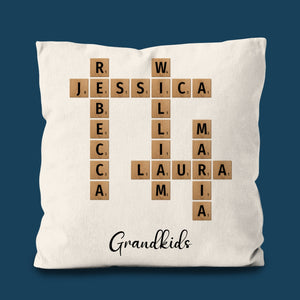 This personalized crossword pillow features the names of beloved grandkids, creating a cozy and heartfelt keepsake for grandparents. A thoughtful gift that brings warmth, smiles, and cherished memories to their home!